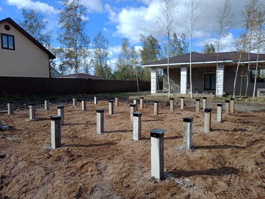 Фундамент на бетонных сваях обладает высокой несущей способностью. Это позволяет выдерживать значительные нагрузки и обеспечивает надежную основу для здания.